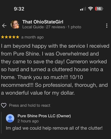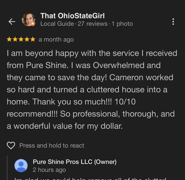5-Star rated cleaning company serving homes, offices, and Airbnb's across the Mason, Maineville & Cincinnati area. Reliable scheduling and spotless results every time.